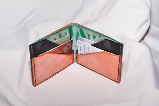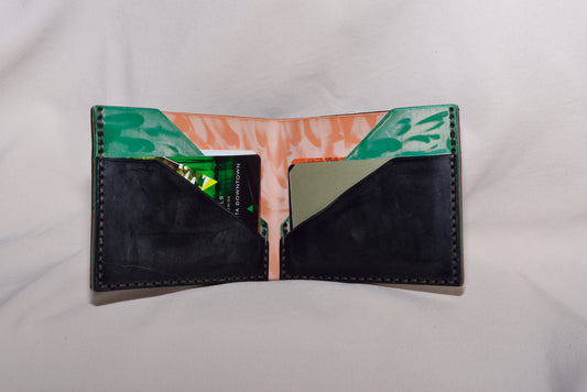 Black, Green and Peach Bi-fold Wallet